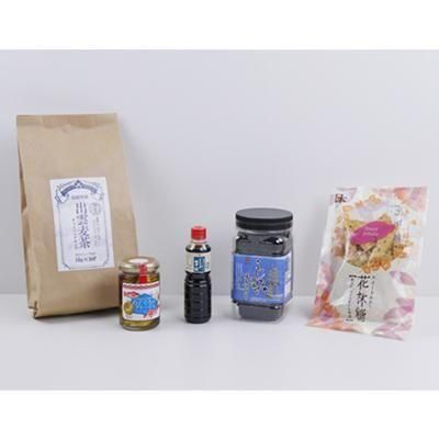 ふっくらとした「のどぐろのアヒージョ」、香り高い「出雲麦茶」、風味豊かな「しじみ醤油味付け海苔」と「しじみ醤油」、そして上品な甘さが広がる「スイートポテト花林糖」。